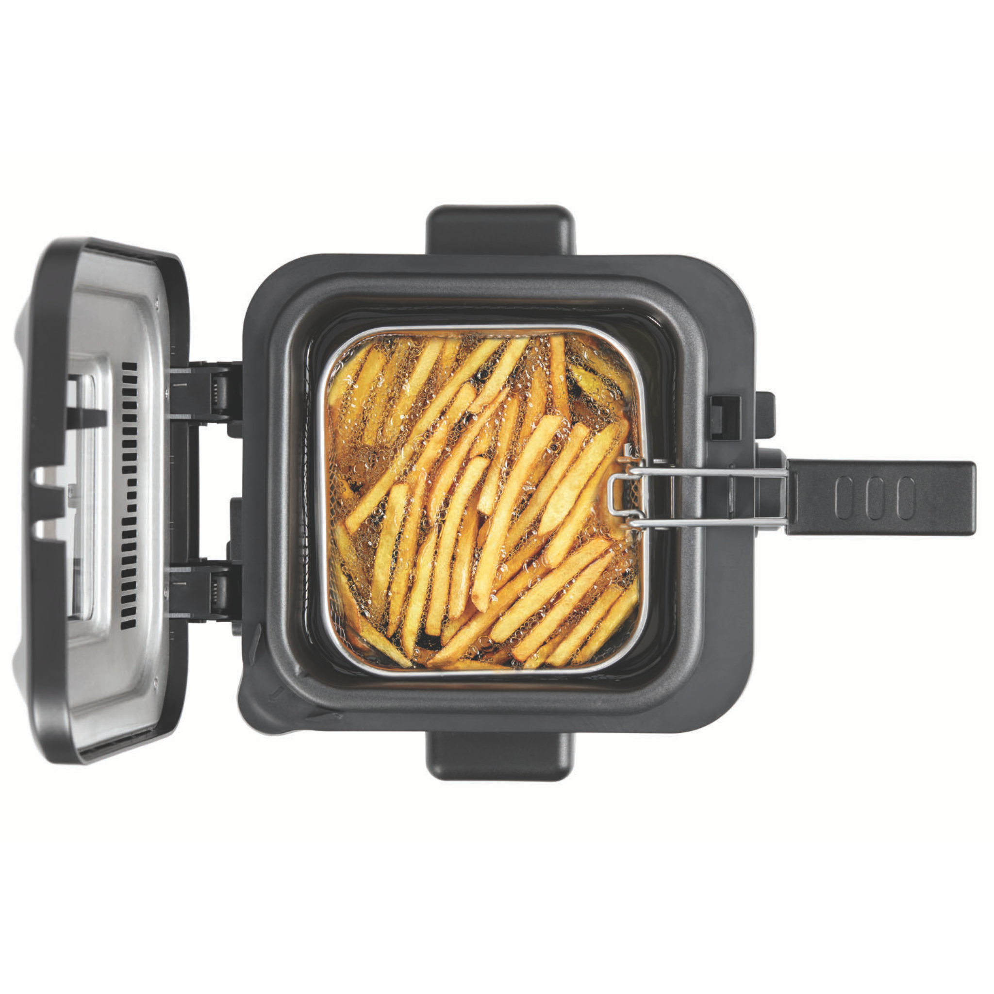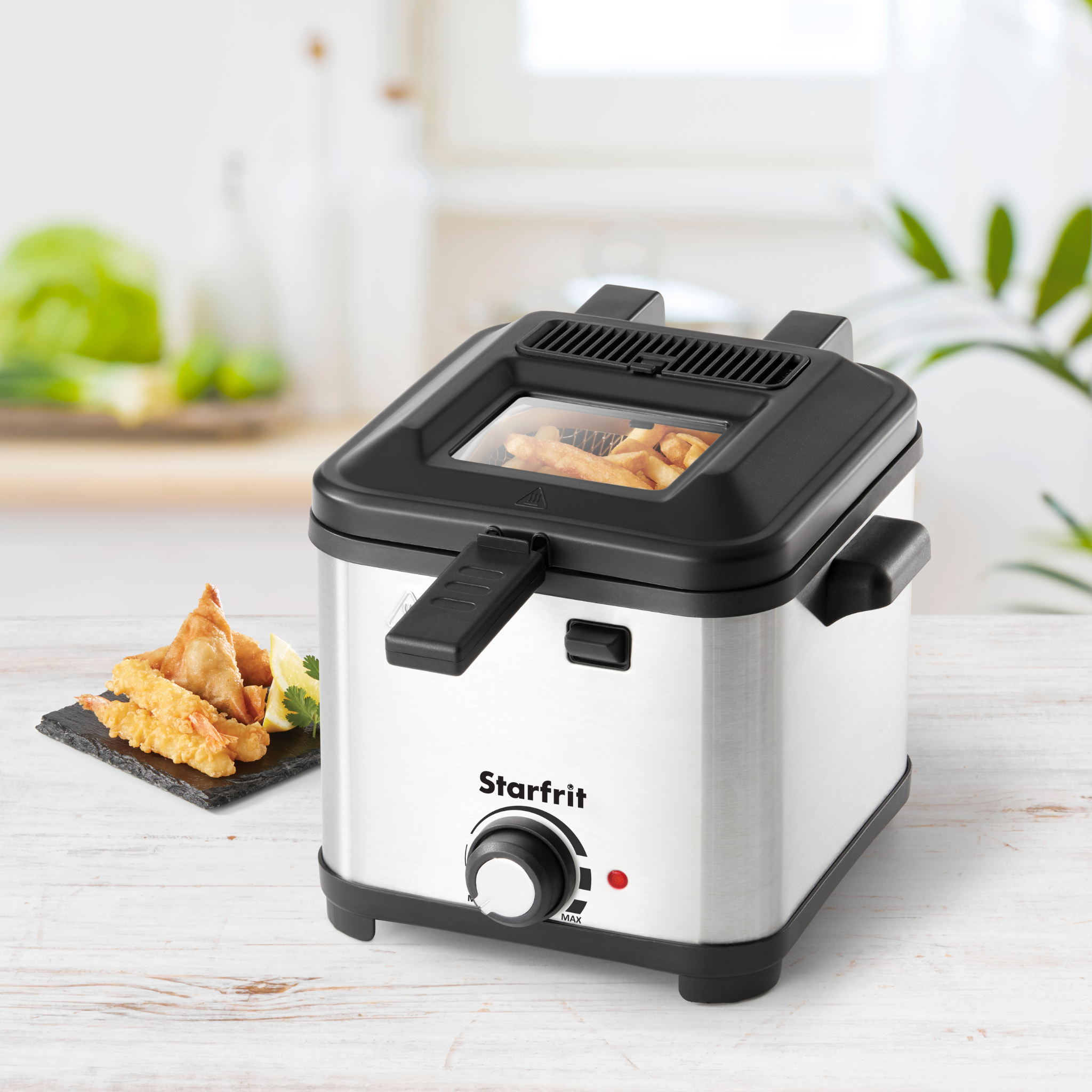 Préparez facilement des aliments frits grâce à cette friteuse compacte de 1,5 L. Son hublot transparent permet de surveiller la cuisson sans ouvrir le couvercle. Le réglage variable de la température jusqu’à 190 °C (374 °F) offre un contrôle précis, tandis que la prise magnétique détachable simplifie le branchement et le rangement.