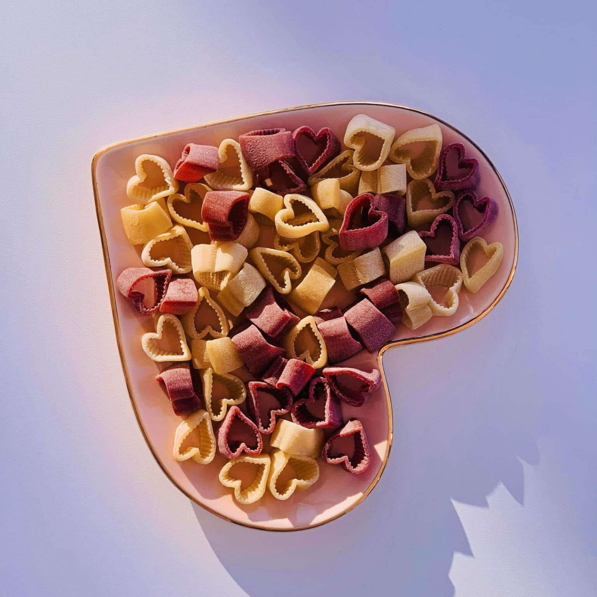 Pâtes alimentaires sèches colorées naturellement avec des fruits, des légumes et des épices.