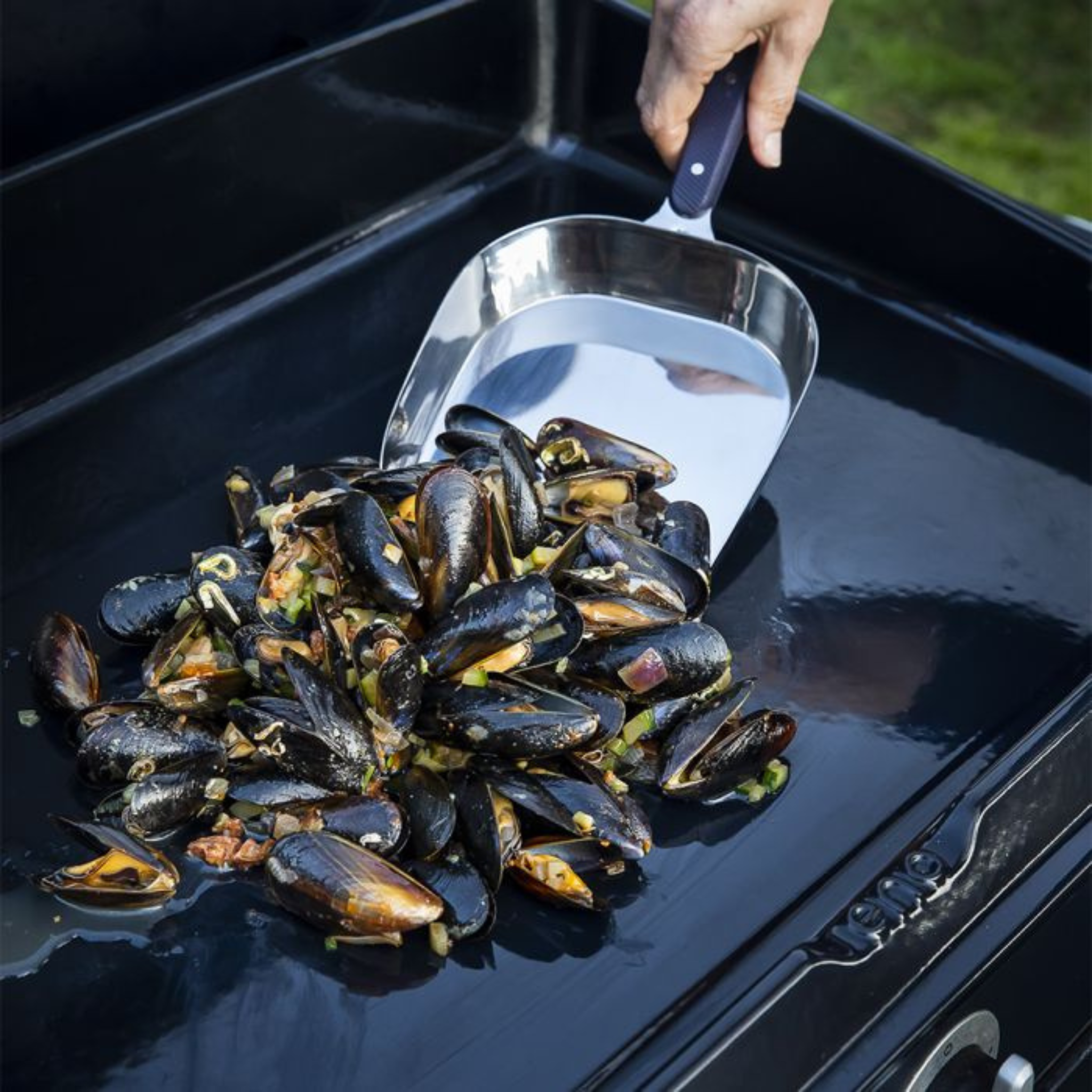 La Pelle à Moules 1L en Inox d’ENO est conçue pour servir facilement les moules et fruits de mer directement à la plancha ou à table. Sa forme large et souple en inox de qualité alimentaire permet de manipuler de grandes quantités en toute fluidité. Équipée d’un manche coudé anti-dérapant avec rivets inox, elle assure une prise en main confortable et sécurisée. Grâce à son système d’accroche par suspension, elle se range facilement et est compatible lave-vaisselle pour un nettoyage rapide.