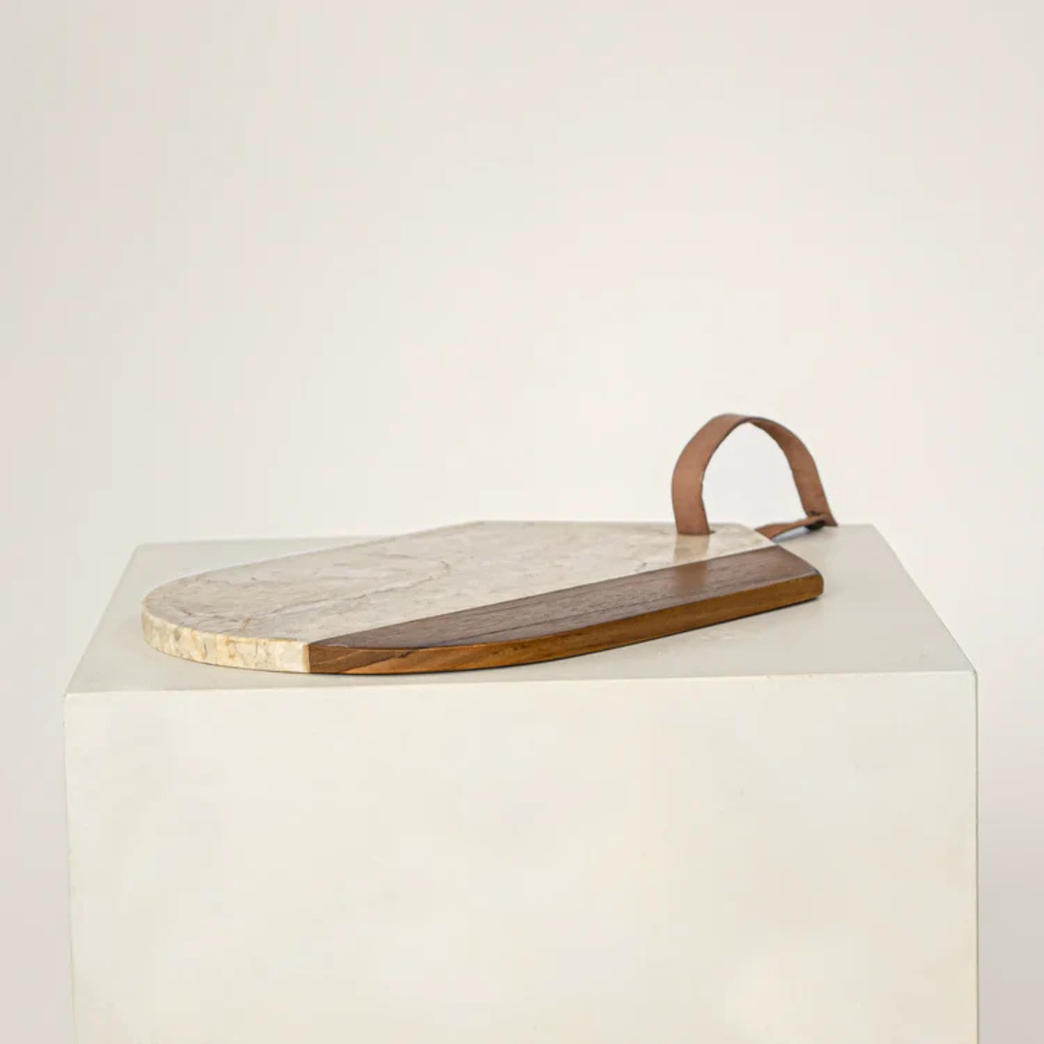 Planche à découper arrondie en marbre blanc et bois de teck 28 cm - Crusoë