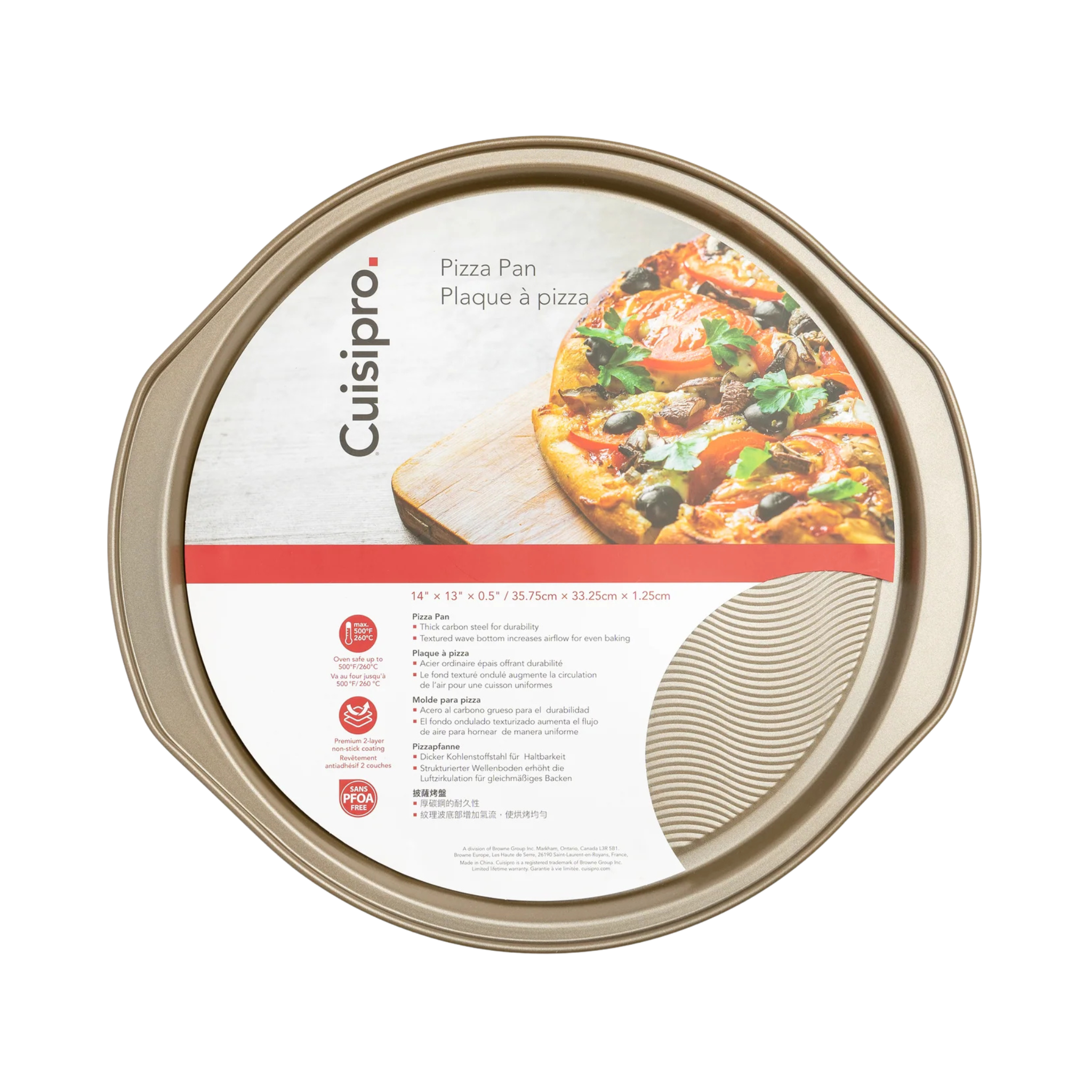 Conçue pour une performance optimale, cette plaque à pizza de Cuisipro assure une cuisson uniforme et un démoulage parfait grâce à son revêtement antiadhésif double couche. Sa structure en acier au carbone épais garantit stabilité et durabilité, tandis que son fond texturé favorise la circulation de l’air pour une cuisson dorée et homogène.