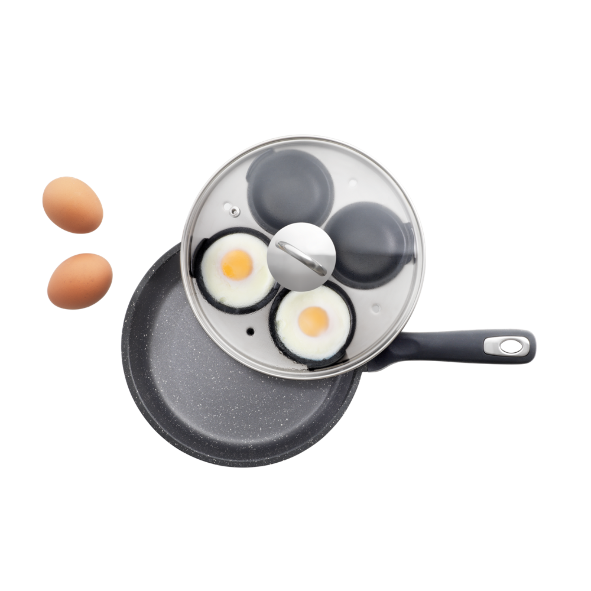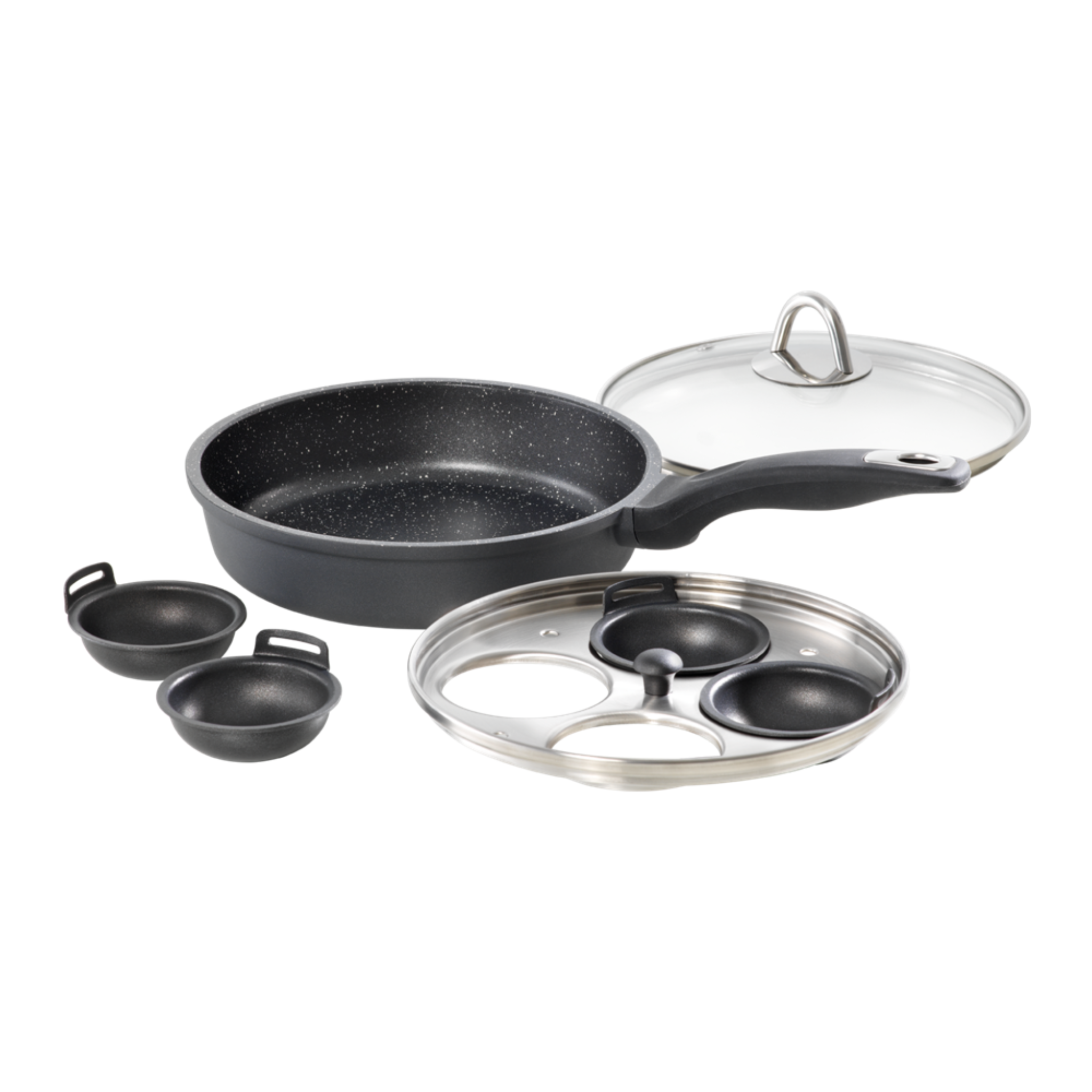 Poêle à frire 8" et pocheuse à quatre œufs avec couvercle 1.4 L GRANITE - Cuisine::pro®