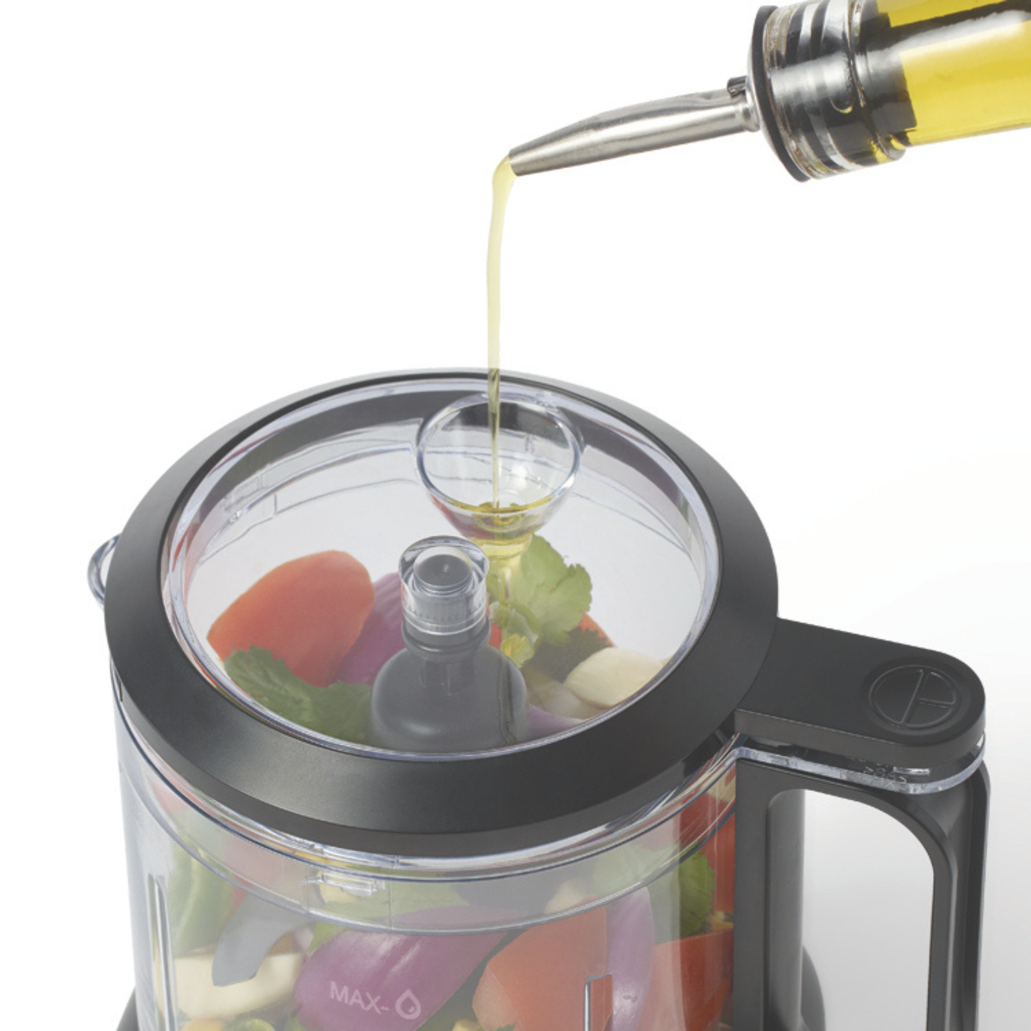 Robot culinaire pratique et simple d’utilisation grâce à son bouton Pulsation/Marche. Son bol sans BPA de 3,5 tasses est équipé d’un orifice d’ajout permettant de contrôler le flux d’ingrédients liquides. Sa lame en acier inoxydable assure une coupe efficace et durable. Le cordon se range facilement autour de la base. Doté d’un moteur de 250 watts avec thermostat réinitialisable.