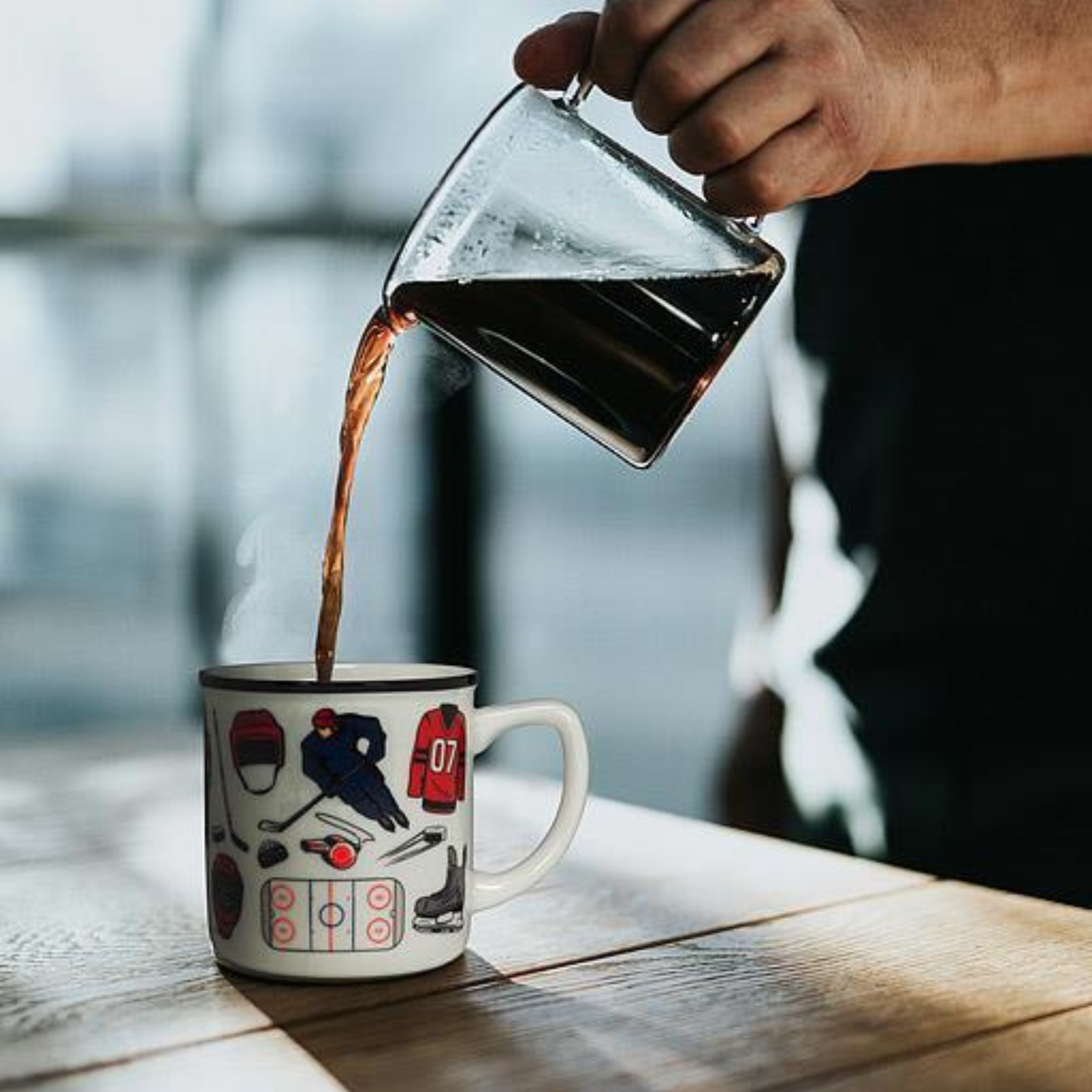 Célébrez le sport préféré des Canadiens à chaque gorgée avec cette tasse en grès de 414 ml (14 oz) au design exclusif Abbott. Ornée de graphiques dynamiques représentant des icônes de hockey – palets, patins, sifflets, patinoires, bâtons, joueurs, et plus encore – elle apporte une touche sportive à vos pauses café ou thé.