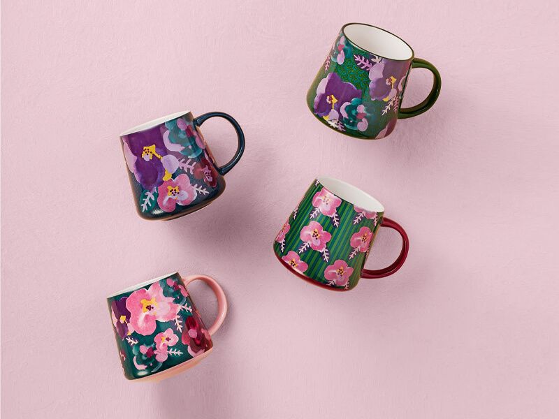 La gamme de tasses Layla présente des motifs créés à partir d'illustrations originales à l'aquarelle, influencées par les fleurs anglaises et les formes douces de la broderie traditionnelle russe. La gamme a été conçue dans une forme asymétrique unique qui est parfaite pour envelopper vos mains par une froide matinée.