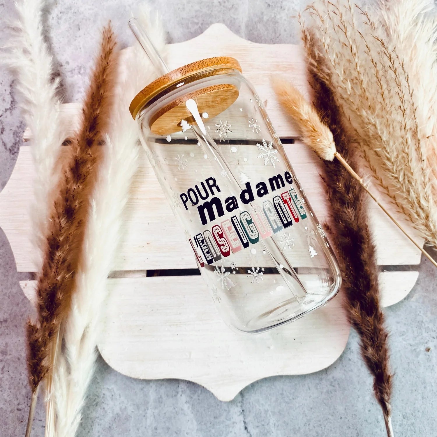 Verre en vitre avec paille Madame l'enseignante - La Fabrik